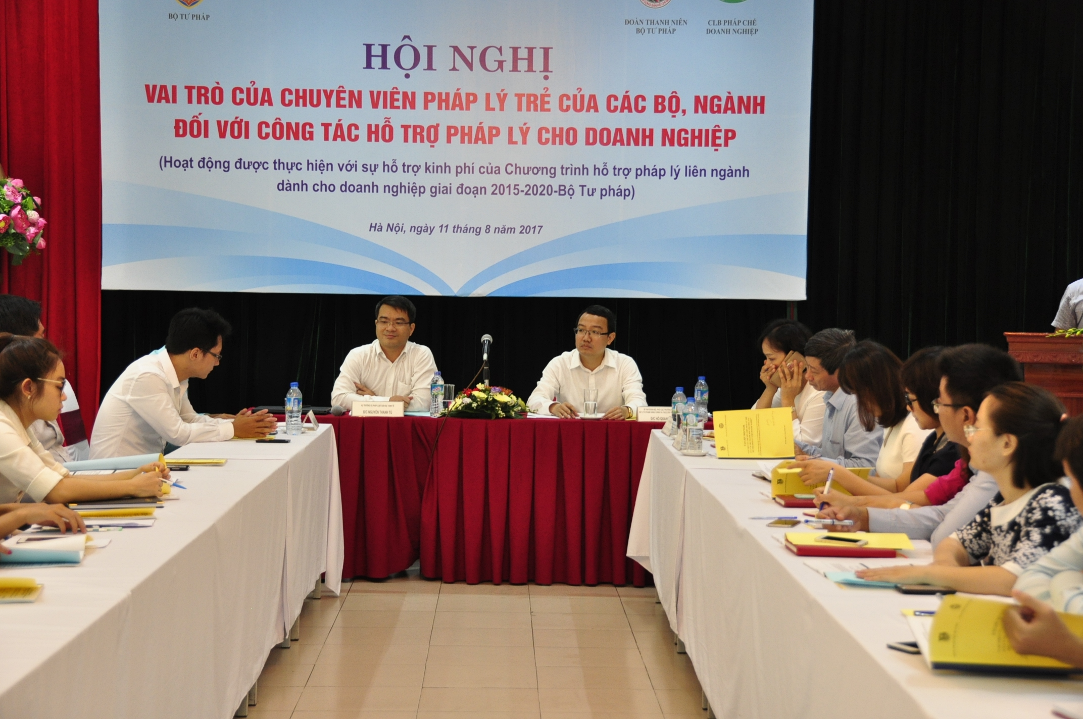 Trên cơ sở Quyết định số 1193/QĐ-585 ngày 28/7/2017 của Ban Quản lý chương trình hỗ trợ pháp lý liên ngành dành cho doanh nghiệp giai đoạn 2015-2020 về việc chọn Câu lạc bộ Pháp chế doanh nghiệp (phối hợp với Đoàn Thanh niên Bộ Tư pháp) tham gia thực hiện hoạt động tổ chức hội nghị đối thoại với doanh nghiệp về các vấn đề pháp lý liên quan đến hoạt động sản xuất, kinh doanh của doanh nghiệp; tổ chức các buổi giới thiệu chuyên đề, các hoạt động hỗ trợ doanh nghiệp nghiên cứu, nắm bắt các cam kết quốc tế và được sự đồng ý của Lãnh đạo Bộ Tư pháp, Đảng ủy Bộ Tư pháp, Câu lạc bộ Pháp chế doanh nghiệp phối hợp với Đoàn Thanh niên Bộ Tư pháp đã tổ chức Hội nghị đối thoại có tên gọi “Vai trò của chuyên viên pháp lý trẻ các Bộ ngành đối với công tác hỗ trợ pháp lý cho doanh nghiệp”. Hội nghị được tổ chức tại Hà Nội vào ngày 11 tháng 8 năm 2017.