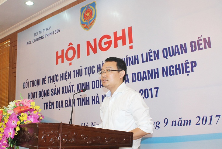 Thực hiện Quyết định số 2319/QĐ-TTg ngày 28 tháng 11 năm 2014 của Thủ tướng Chính phủ về việc tiếp tục thực hiện và điều chỉnh nội dung các dự án của Chương trình hỗ trợ pháp lý liên ngành dành cho doanh nghiệp giai đoạn 2010-2014; Theo Quyết định số 1189/QĐ-585 ngày 28/7/2017 của Ban quản lý Chương trình hỗ trợ pháp lý liên ngành dành cho doanh nghiệp giai đoạn 2015 - 2020, ngày 6 tháng 9 năm 2017, Sở Tư pháp Hà Nam tổ chức hội nghị đối thoại về thực hiện thủ tục hành chính liên quan đến hoạt động sản xuất, kinh doanh trên địa bàn tỉnh Hà Nam.