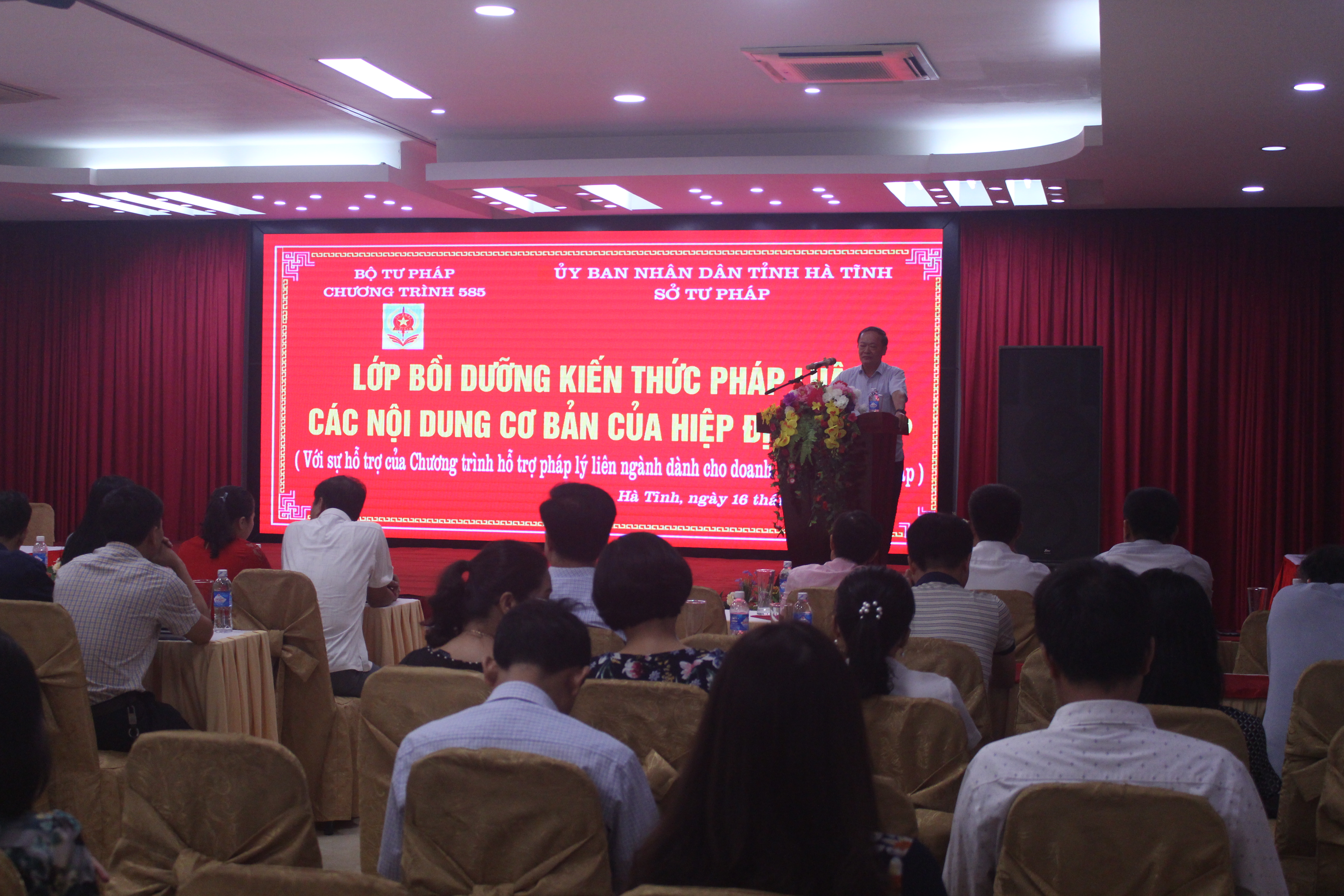 Ngày 16/8/2019, Sở Tư pháp Hà Tĩnh tổ chức Lớp bồi dưỡng kiến thức pháp luật giới thiệu các nội dung cơ bản của Hiệp định đối tác toàn diện và tiến bộ xuyên Thái Bình Dương (CPTPP); do đồng chí Lê Viết Hồng - Giám đốc Sở chủ trì và đồng chí Lại Thị Vân Anh - Trưởng phòng Pháp luật Đầu tư nước ngoài và Giải quyết tranh chấp quốc tế - Vụ Pháp luật quốc tế - Bộ Tư pháp làm giảng viên lớp bồi dưỡng.