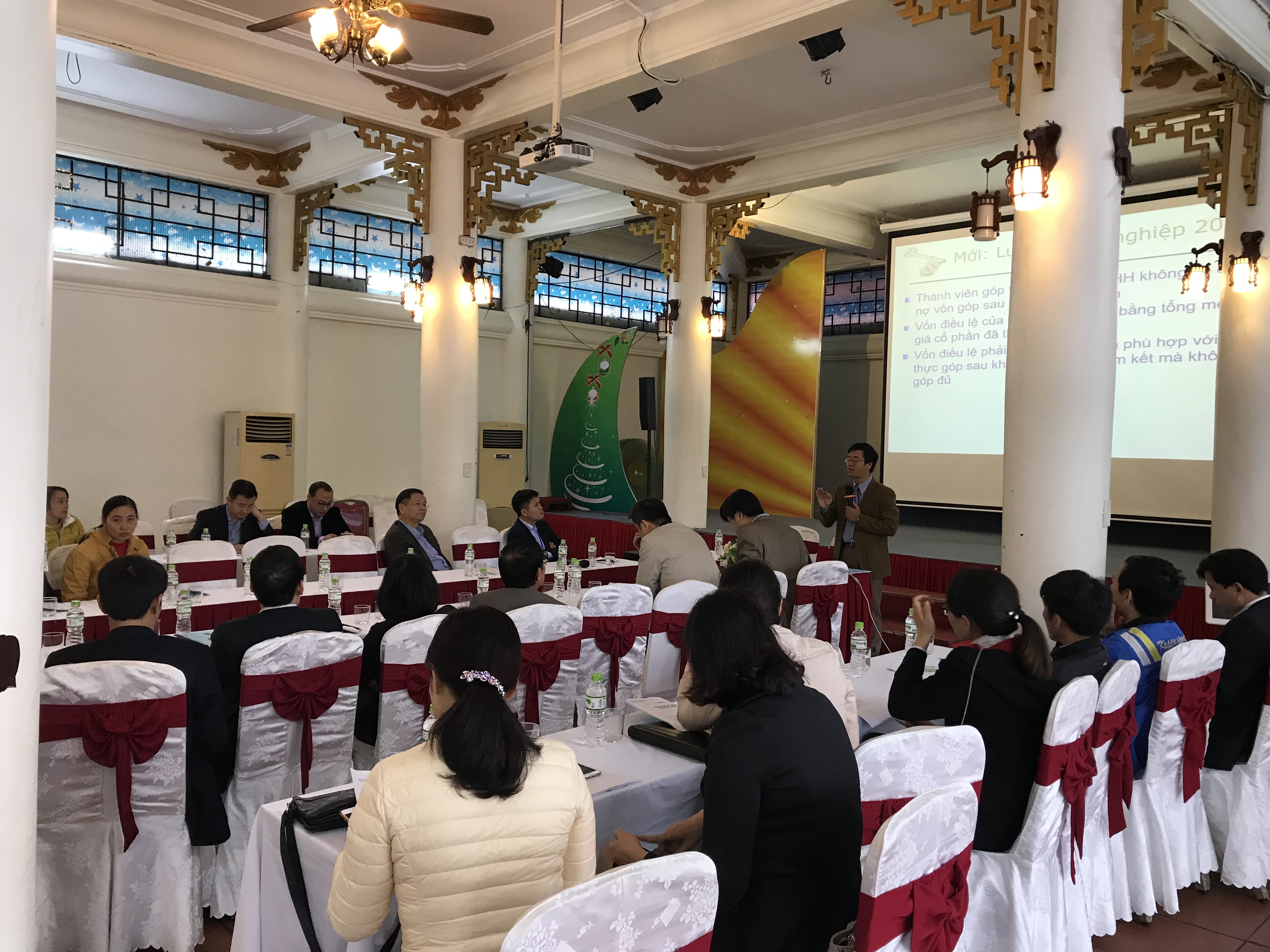 Với những nội dung thiết thực như: Những lưu ý khi góp vốn vào doanh nghiệp, Những lưu ý khi huy động vốn tín dụng từ ngân hàng, Những lưu ý khi quản lý tài sản doanh nghiệp; Những lưu ý khi thực hiện nghĩa vụ thuế, Những lưu ý khi khai thuế, quyết toán thuế, hoàn thuế giá trị gia tăng, Những lưu ý khi khai thuế, quyết toán thuế thu nhập doanh nghiệp… lớp bồi dưỡng đã thu hút được sự tham dự của 80 cán bộ, nhân viên các doanh nghiệp trên địa bàn tỉnh Bắc Binh. TS. Trần Vũ Hải, Giảng viên Đại học Luật Hà Nội – giảng viên lớp bồi dưỡng cũng đã dành nhiều thời gian để trao đổi, giải đáp những tình huống vướng mắc trực tiếp doanh nghiệp gặp phải trong quá trình hoạt động sản xuất kinh doanh, đặc biệt là các trường hợp liên quan đến việc điều chuyển người lao động, buộc thôi việc trái quy định pháp luật… Bên cạnh đó, Lớp bồi dưỡng còn có sự có mặt của Ông Nguyễn Cảnh Thăng - Phó Trưởng phòng Phòng Pháp luật Kinh tế ngành, Vụ Pháp luật dân sự - kinh tế, Bộ Tư pháp tham dự với tư cách chuyên gia về pháp luật về tín dụng, ngân hàng, giải đáp thắc mắc của doanh nghiệp về các vấn đề liên quan đến nợ xấu, xử lý nợ xấu, đây là vấn đề mà các ngân hàng đang gặp nhiều khó khăn vướng mắc, cần được hỗ trợ, tư vấn.