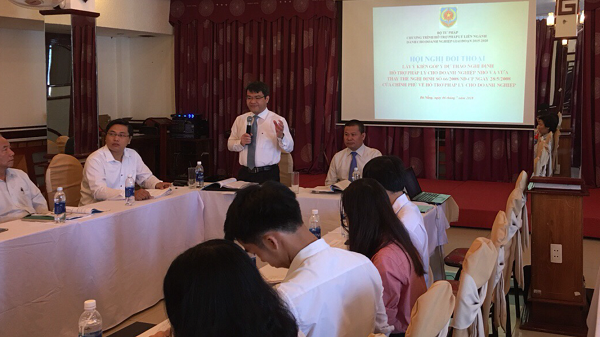 Thực hiện Kế hoạch năm 2018 của Ban Chỉ đạo Chương trình hỗ trợ pháp lý liên ngành dành cho doanh nghiệp giai đoạn 2015-2020, Bộ Tư pháp (gọi là Chương trình 585), trên cơ sở nhiệm vụ do Chính phủ giao cho Bộ Tư pháp và Kế hoạch năm 2018 của Bộ Tư pháp về việc xây dựng Nghị định về hỗ trợ pháp lý cho doanh nghiệp nhỏ và vừa trình Chính phủ Quý IV/2018, ngày 06/7/2018 tại TP. Đà Nẵng, Ban Quản lý Chương trình 585 chủ trì phối hợp với Vụ Pháp luật dân sự - kinh tế, Bộ Tư pháp và các Sở, ngành liên quan, các tổ chức đại diện cho doanh nghiệp của các địa phương ở Khu vực các tỉnh miền Trung như Đà Nẵng, Thừa Thiên Huế, Quảng Trị, Quảng Bình, Quảng Nam, Quảng Ngãi…. Tổ chức Hội nghị đối thoại “Lấy ý kiến dự thảo Nghị định về hỗ trợ pháp lý cho doanh nghiệp nhỏ và vừa thay thế Nghị định số 66/2008/NĐ-CP ngày 28/5/2008 của Chính phủ về hỗ trợ pháp lý cho doanh nghiệp”. Chủ trì Hội nghị đối thoại có TS. Nguyễn Thanh Tú, Phó Trưởng ban Ban Quản lý Chương trình 585, Vụ trưởng Vụ Pháp luật dân sự - kinh tế, Bộ Tư pháp. Chương trình có sự tham dự của đại diện Dự án Quản trị Nhà nước nhằm tăng trưởng toàn diện (Dự án GIG) cùng các cơ quan, tổ chức, cá nhân có liên quan trên địa bàn tỉnh, thành phố Đà Nẵng, Thừa Thiên Huế, Quảng Trị, Quảng Bình, Quảng Nam, Quảng Ngãi….và các cơ quan báo, đài tham dự.