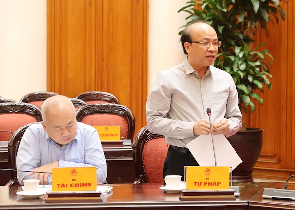 Thứ trưởng Bộ Tư pháp Phan Chí Hiếu, đại diện cơ quan chủ trì xây dựng dự thảo Quyết định của Thủ tướng báo cáo tại cuộc họp. (Ảnh trong bài: VGP)