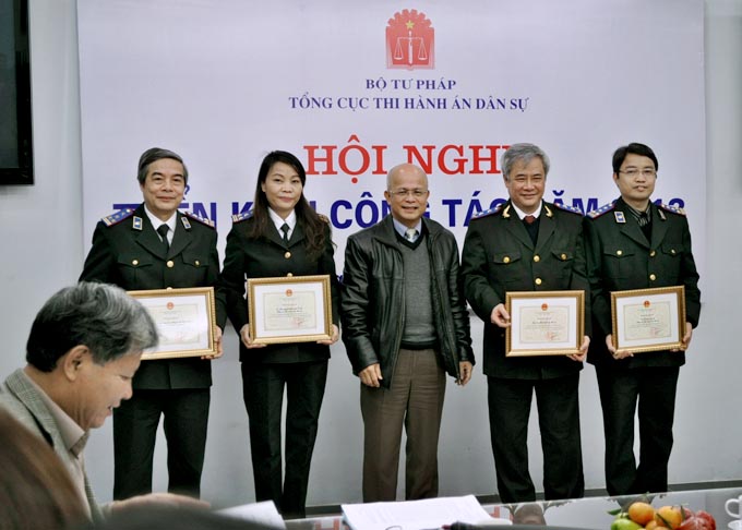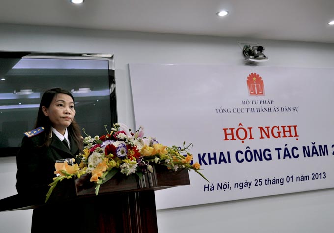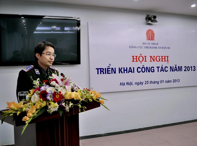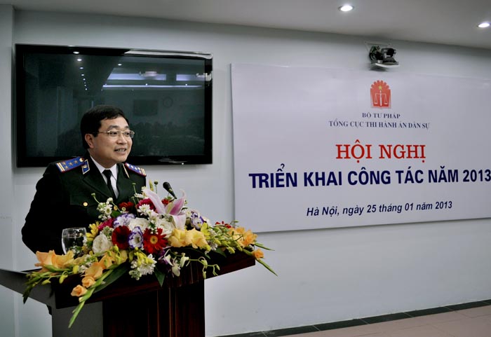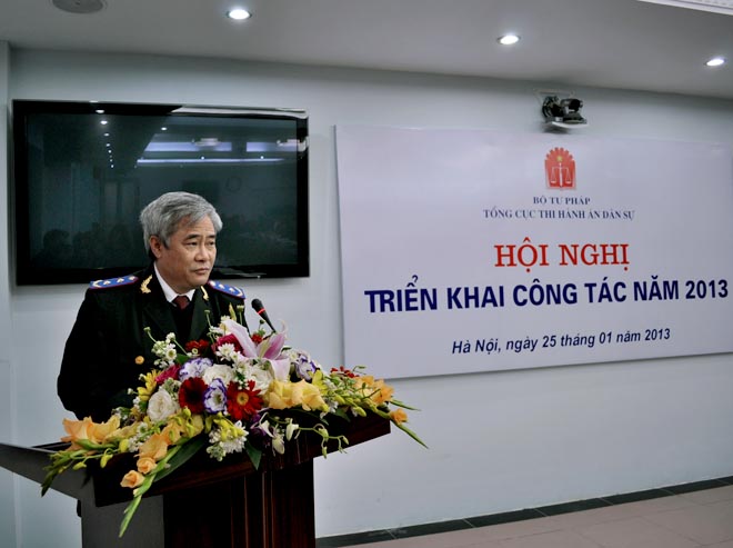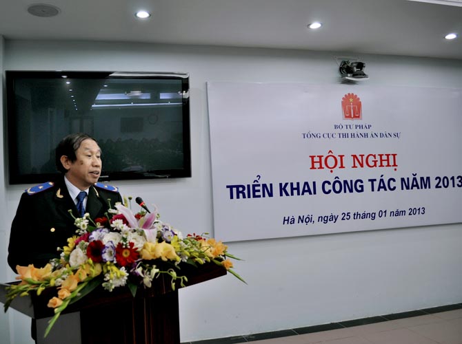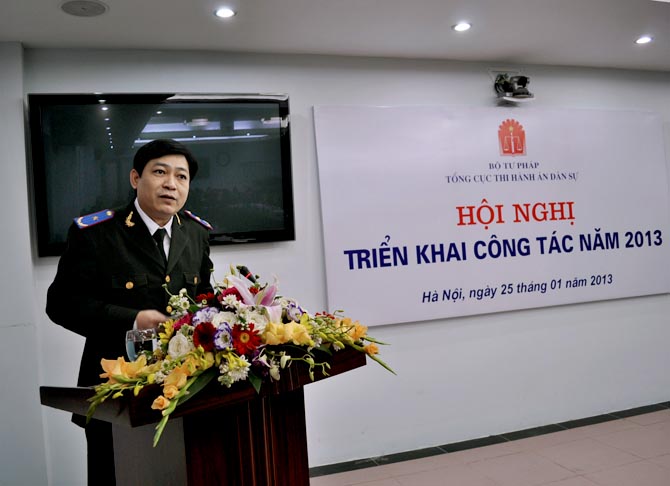 Hội nghị đã nghe Phó Tổng cục trưởng Nguyễn Thanh Thủy báo cáo kết quả công tác năm 2012 và phương hướng, nhiệm vụ công tác năm 2013. Theo đó, năm 2012 công tác THADS bị ảnh hưởng không nhỏ bởi tình hình kinh tế khó khăn nhưng Tổng cục THADS đã có sự đổi mới công tác quản lý và điều hành theo hướng sâu sát, quyết liệt hơn, thể hiện rõ nét vai trò của cơ quan quản lý Ngành, tổ chức thi hành án xong được số việc và tiền nhiều hơn và đạt tỷ lệ cao hơn năm 2011. Tổng số việc phải thi hành là 642.885 việc, tăng 10.340 việc so với năm 2011, đã thi hành xong 395.284 việc/446.255 việc có điều kiện thi hành chiếm 88,58%, vượt 3,58 % so với chỉ tiêu được giao năm 2012. Số việc còn phải thi hành chuyển sang năm 2013 là 229.714 việc, giảm 2,08% so với số việc còn phải thi hành của năm 2011 chuyển sang 2012. Tổng số tiền phải thi hành là 43.219 tỷ đồng (lấy số tròn), tăng gần 8 nghìn tỷ đồng so với năm 2011, đã thi hành được 10.344 tỷ/13.400 tỷ đồng đạt tỷ lệ 76,97% vượt 6,97% so với chỉ tiêu được giao năm 2012. Số tiền còn phải thi hành chuyển sang năm 2013 là trên 28.000 tỷ đồng, tăng gần 7.000 tỷ so với năm 2011.