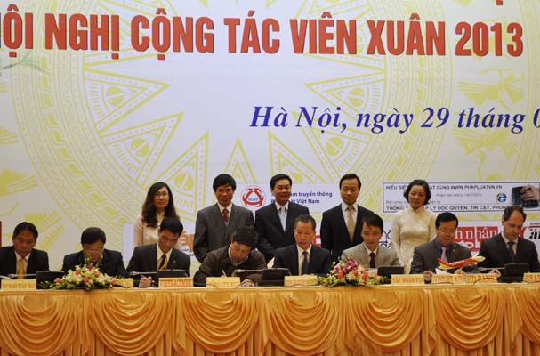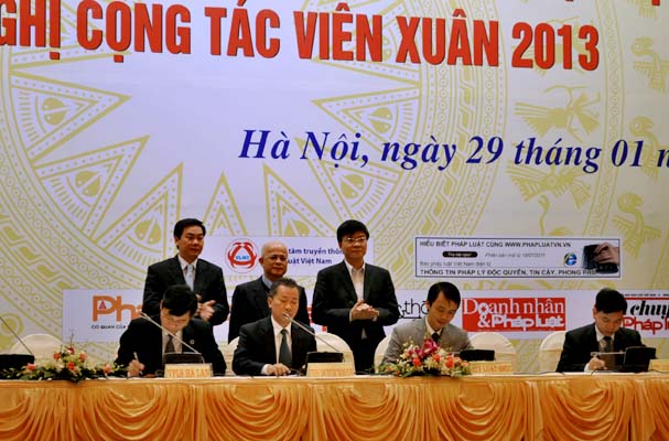 Sự thành công trong công tác của Báo năm 2012 có những đóng góp to lớn từ phía các doanh nghiệp đối tác của Báo và đông đảo các cộng tác viên. Thay mặt Báo Pháp luật Việt Nam, Phó Tổng biên tập thường trực Đặng Ngọc Luyến đã gửi lời cảm ơn trân trọng và sâu sắc đến các doanh nghiệp đối tác, các cộng tác viên đã đồng hành, hợp tác, giúp đỡ Báo Báo Pháp luật Việt Nam hoàn thành nhiệm vụ suốt thời gian qua và những năm tới đây.