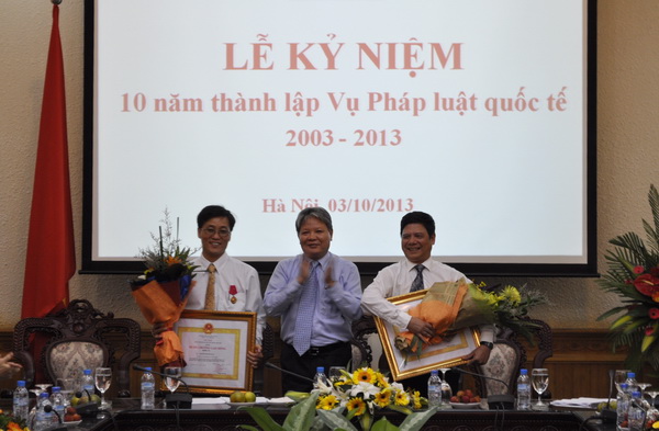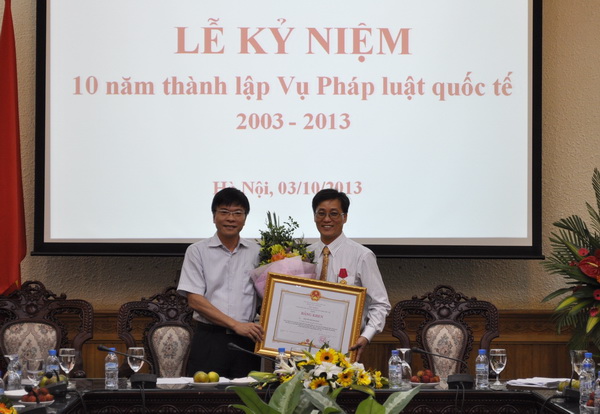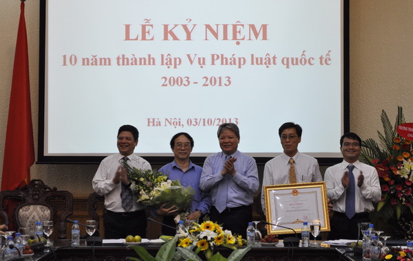 Tại lễ kỷ niệm, lãnh đạo Bộ đã trao trao Huân chương lao động hạng 3 của Chủ tịch nước, Bằng khen của Thủ tướng Chính phủ cho tập thể Vụ PLQT và các cá nhân trong Vụ nhằm ghi nhận những thành tích của đơn vị trong 10 năm qua.