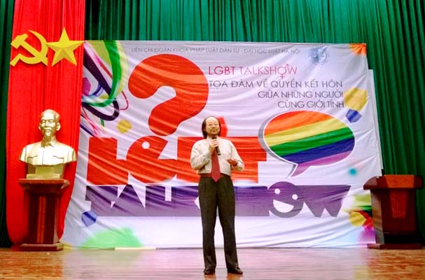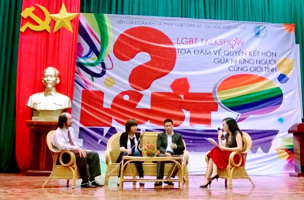 Bên cạnh đó, hiện nay tại Việt Nam hôn nhân cùng giới đang diễn ra, nhiều người trong giới LGBT đã công khai, sống thật với con người của mình. Tất cả những điều đó đã dấy lên trong xã hội nhiều quan điểm trái chiều về việc có nên mở cánh cửa hôn nhân cho những người cùng giới hay vẫn giữ nguyên quan điểm hôn nhân là việc kết đôi giữa nam và nữ. Với ý nghĩa đó, ngày 30 tháng 10 năm 2013, Liên chi đoàn Khoa Pháp luật dân sự Trường Đại học Luật Hà Nội đã tổ chức chương trình Tọa đàm mang tên “LGBT – Quyền kết hôn giữa những người cùng giới tính” với mục đích mở rộng, chia sẻ cho sinh viên những kiến thức, nhận thức xung quanh vấn đề về cộng đồng LGBT; nghe và thảo luận cùng các chuyên gia những quan điểm pháp luật về hôn nhân cùng giới.