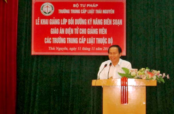 Sáng ngày 11 tháng 11 năm 2013, Trường Trung cấp Luật Thái Nguyên đã phối hợp với Vụ Tổ chức cán bộ, Bộ Tư pháp và các Trường Trung cấp Luật thuộc Bộ tổ chức Khai giảng lớp bồi dưỡng kỹ năng biên soạn giáo trình, giáo án và tài liệu giảng dạy cho giảng viên các Trường Trung cấp Luật thuộc Bộ.