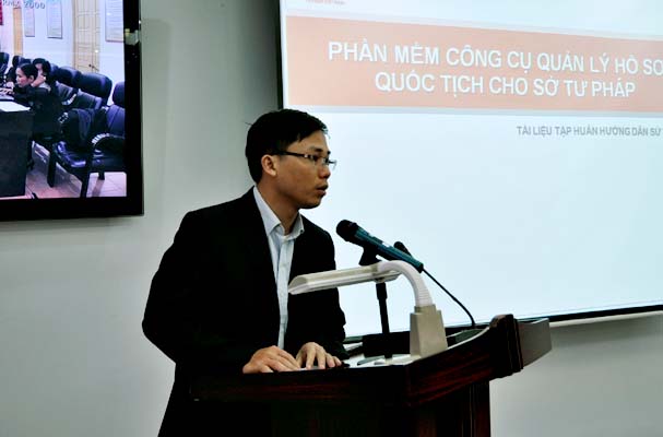 Phát biểu tại buổi đào tạo, ông Lê Văn Duyên cho biết, qua sự phối hợp với Cục Hộ tịch, quốc tịch, chứng thực và một số Sở Tư pháp, Phần mềm công cụ quản lý hồ sơ quốc tịch cho Sở Tư pháp được đánh giá là một phần mềm tương đối thân thiện, dễ học và dễ sử dụng. Phó Cục trưởng Cục Công nghệ thông tin nhấn mạnh, qua buổi tập huấn, với tinh thần học tập nghiêm túc, thẳng thắn trao đổi các vướng mắc, các cán bộ sẽ có thể nắm bắt được cách thức sử dụng của phần lớn các nội dung có trong phần mềm. Sau khi kết thúc buổi tập huấn, đề nghị các cán bộ tiến hành đưa phần mềm vào sử dụng thử nghiệm trong công tác tiếp nhận, quản lý hồ sơ các việc về quốc tịch tại Sở. Đồng thời, thực hiện đánh giá, cho ý kiến đối với phần mềm, qua đó Cục Công nghệ thông tin phối hợp với Cục Hộ tịch, quốc tịch, chứng thực nghiên cứu, tiếp thu và chỉnh sửa phần mềm sao cho phù hợp, đáp ứng hiệu quả cho công tác quản lý quốc tịch tại các Sở Tư pháp.