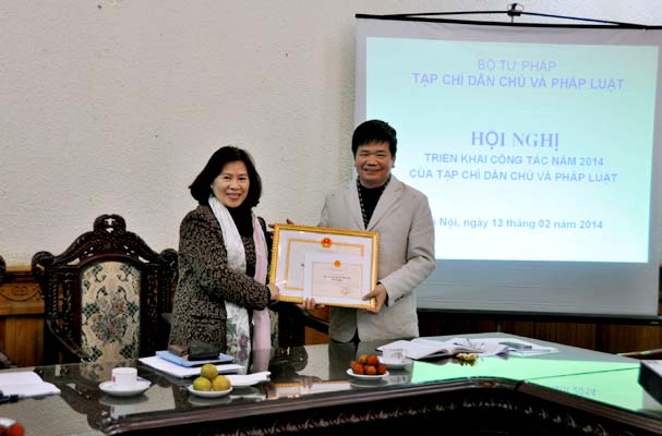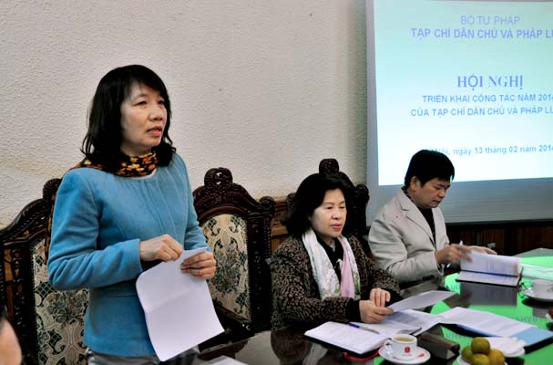 Hội nghị đã nghe đồng chí Phan Thị Tuyết Mai, Phó Tổng biên tập Tạp chí Dân chủ và Pháp luật báo cáo tổng kết công tác năm 2013 và phương hướng, nhiệm vụ, giải pháp công tác năm 2014. Theo đó, được sự quan tâm, chỉ đạo sát sao của Lãnh đạo Bộ, với sự cố gắng phấn đấu không ngừng nâng cao về trình độ, chuyên môn, nghiệp vụ và tinh thần đoàn kết nhất trí cao của tập thể đơn vị, Tạp chí Dân chủ và Pháp luật đã hoàn thành xuất sắc kế hoạch công tác đề ra trong năm 2013. Tạp chí đã biên tập, xuất bản, phát hành 12 số Tạp chí định kỳ hàng tháng 64 trang, 12 số Tạp chí chuyên đề 32 trang đảm bảo chất lượng về nội dung và hình thức, phản ánh đầy đủ các mặt hoạt động thuộc chức năng, nhiệm vụ của Bộ Tư pháp. Một số chuyên đề chuyên sâu như: Góp ý Dự thảo sửa đổi Hiến pháp; Ngành Tư pháp góp ý Dự thảo sửa đổi Hiến pháp; Theo dõi thi hành pháp luật; Pháp luật về xử lý vi phạm hành chính; Ngành Tư pháp với chuẩn mực đạo đức theo lời Bác dạy… đã có những đóng góp thiết thực vào việc nghiên cứu, đóng góp ý kiến hữu ích cho những mảng nội dung này. Các ấn phẩm của Tạp chí được xuất bản, phát hành đúng tiến độ, bám sát tình hình thực tiễn, đảm bảo chất lượng. Các công tác khác cũng được triển khai đúng kế hoạch. Thời gian qua, Tạp chí đã phối hợp với Cục Công nghệ thông tin xây dựng Trang thông tin điện tử của Tạp chí Dân chủ và Pháp luật. Nội dung thông tin trên Trang tin thường xuyên được cập nhật kịp thời, đầy đủ những thông tin hoạt động của Bộ, ngành và có những bài viết mang đậm hơi thở của cuộc sống dưới góc độ nhìn nhận của pháp luật.
