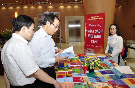 Tham dự đợt hưởng ứng ngày Sách Việt Nam, gian hàng trưng bày sách của Nhà xuất bản Tư pháp được đón tiếp nhiều độc giả quan tâm, trong đó có một số lãnh đạo cấp cao, các nhà khoa học có uy tín trong lĩnh vực pháp luật.
