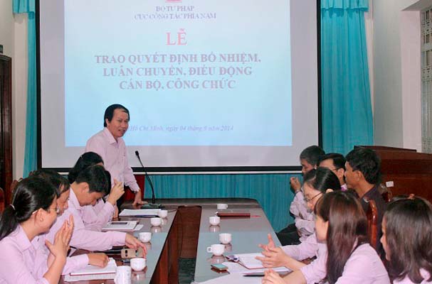 Thừa ủy quyền của Bộ trưởng Bộ Tư pháp, đồng chí Lê Tiến Châu - Cục trưởng Cục CTPN đã trao Quyết định của Bộ trưởng Bộ Tư pháp về việc điều động, bổ nhiệm công chức giữ chức vụ lãnh đạo và biệt phái công chức đối với ông Huỳnh Văn Tam. Theo đó, điều động ông Huỳnh Văn Tam, nguyên Cục trưởng Cục Thi hành án dân sự tỉnh (THADS) Kiên Giang đến công tác tại Tổng cục THADS Bộ Tư pháp và bổ nhiệm Ông giữ chức vụ Phó Vụ trưởng Vụ Nghiệp vụ 1 Tổng cục THADS kể từ ngày 01/8/2014. Đồng thời, biệt phái ông Huỳnh Văn Tam, Phó Vụ trưởng Vụ Nghiệp vụ 1 Tổng cục THADS đến công tác tại Cục CTPN từ ngày 01/8/2014.
