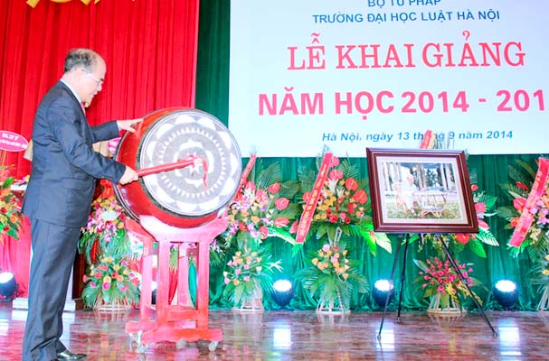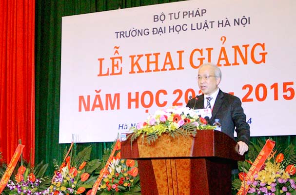 Trong niềm vui chung của các thầy giáo, cô giáo và học sinh, sinh viên trong cả nước, chúng ta long trọng tổ chức lễ khai giảng năm học mới của Trường Đại học Luật Hà Nội. Thay mặt Lãnh đạo Đảng, Nhà nước, tôi gửi đến toàn thể cán bộ, giảng viên, sinh viên, học viên của Trường lời chúc mừng tốt đẹp nhất. Chúc Trường Đại học Luật Hà Nội, với sức vóc tuổi 35, ngày càng phát triển, thực sự trở thành ngôi trường hàng đầu về đào tạo cán bộ pháp luật của Việt Nam.