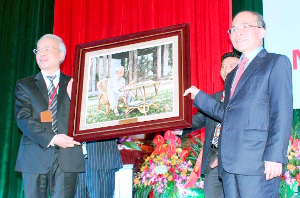 Nhân dịp xuống thăm Trường, tôi tặng nhà trường bức tranh Bác Hồ để nhắc nhở cán bộ, giảng viên, sinh viên Trường tư tưởng của Bác: “Trăm điều phải có thần linh pháp quyền”.