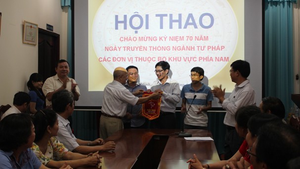 Hội thao, văn nghệ các đơn vị thuộc Bộ Tư pháp tại khu vực phía NamChiều ngày 17 và 18 tháng 4 năm 2015, Cục Công tác phía Nam (Cục CTPN) phối hợp với các đơn vị thuộc Bộ Tư pháp tại khu vực phía Nam gồm Học viện Tư pháp - cơ sở TP. Hồ Chí Minh (HVTP-HCM), Trường trung cấp Luật Vị Thanh (TCL Vị Thanh), Cơ quan đại diện Báo pháp luật Việt Nam tại TP. Hồ Chí Minh (Báo PLVN-HCM), Trung tâm Đăng ký Giao dịch tài sản tại TP. Hồ Chí Minh (TTGDTS) và Trung tâm hỗ trợ xuất bản và phát hành sách pháp luật tại TP. Hồ Chí Minh (TTPHS) tổ chức khai mạc và thi đấu Hội thao, văn nghệ hướng tới chào mừng các ngày lễ lớn của đất nước và kỷ niệm 70 năm thành lập Ngành Tư pháp. Tham dự và cùng chung vui có nguyên Thứ trưởng Bộ Tư pháp ông Nguyễn Đức Chính, nguyên Tổng Cục trưởng Tổng Cục Thi hành án Dân sự ông Nguyễn Văn Luyện và cán bộ, công chức của các đơn vị thuộc Bộ tại phía Nam đã nghỉ hưu.Các hoạt động diễn ra bao gồm thi đấu cầu lông, bóng bàn, bóng đá và liên hoan văn nghệ giữa các đơn vị. Hoạt động nhận được sự quan tâm, ủng hộ và sự tham gia nhiệt tình, tích cực của cán bộ, công chức, viên chức, người lao động các đơn vị. Sau hai ngày diễn ra các hoạt động sôi nổi trên tinh thần thể thao, kết quả lần lượt như sau: giải nhất toàn đoàn thuộc về HVTP-HCM, giải nhì thuộc về liên quân Cục CTPN, Báo PLVN-HCM, TTGDTS, TTPHS, giải ba thuộc về TCL Vị Thanh.Qua các hoạt động trên đã tạo sân chơi giao lưu góp phần rèn luyện sức khỏe và gắn kết thêm tình đồng nghiệp giữa các đơn vị thuộc Bộ tại phía NamMinh Thông