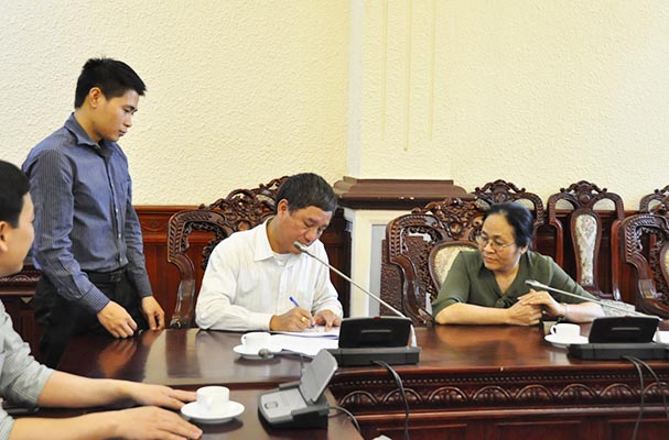 Cũng tại buổi bàn giao, Thứ trưởng Đinh Trung Tụng và đại diện lãnh đạo một số đơn vị thuộc Bộ đã chứng kiến buổi bàn giao công tác lãnh đạo giữa hai đồng chí Lê Hồng Sơn và Mạc Thị Hoa.