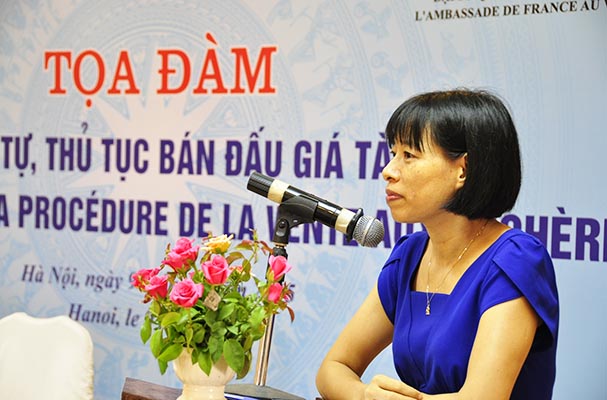Bà Nguyễn Thị Mai, Phó Cục trưởng Cục Bổ trợ Tư pháp, bà Kanpandji Morhange, chuyên gia BĐGTS đồng chủ trì tọa đàm. Tham dự tọa đàm còn có đại diện: Đại sứ quán Pháp tại Việt Nam; Văn phòng Chính phủ, một số bộ, ngành có liên quan; một số Sở Tư pháp tỉnh, thành phố trực thuộc TW; một số Trung tâm dịch vụ bán đấu giá tài sản khu vực phía bắc (từ Quảng Trị trở ra).