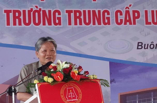 Phát biểu tại buổi lễ, Bộ trưởng Bộ Tư pháp Hà Hùng Cường đã ghi nhận những thành tích mà tập thể Nhà trường đã đạt được trong những năm qua đồng thời nhấn mạnh, việc khởi công các hạng mục còn lại thuộc Dự án xây dựng Trường Trung cấp Luật Buôn Ma Thuột sẽ góp phần quan trọng để nhà trường hoàn thiện mô hình và trở thành cơ sở đào tạo chuyên ngành Luật có uy tín trong khu vực. Về phía nhà trường cần quan tâm đổi mới phương pháp dạy và học để nâng cao chất lượng đào tạo, đáp ứng nhu cầu nguồn nhân lực pháp luật cho các tỉnh Tây Nguyên và Duyên hải Nam Trung bộ, nhất là trong giai đoạn đất nước đang đổi mới công tác tư pháp.