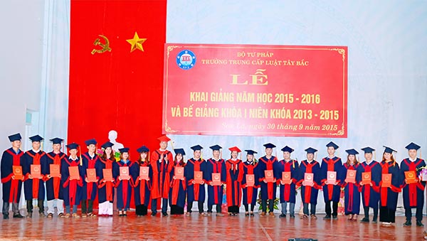 Ngay sau phần Lễ khai giảng, Trường Trung cấp Luật Tây Bắc tổ chức bế giảng, khen thưởng cho các em học sinh có thành tích xuất sắc trong học tập, trong công tác Đoàn, phong trào thanh niên và trao bằng tốt nghiệp cho 188 em học sinh Khóa I niên khóa 2013-2015 ./.