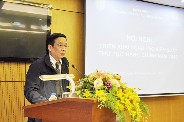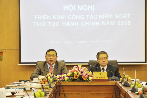 Phát biểu chỉ đạo tại Hội nghị, thay mặt Ban cán sự, lãnh đạo Bộ Tư pháp, Thứ trưởng Đinh Trung Tụng ghi nhận, biểu dương những kết quả mà Cục KSTTHC đã đạt được trong năm 2015. Thứ trưởng nhấn mạnh, công tác cải cách tư pháp, cải cách hành chính, trong đó có KSTTHC có mối liên hệ hữu cơ với sự phát triển kinh tế, xã hội của đất nước. Trong khi đó, nhận thức của một số cơ quan, đơn vị, cá nhân về vai trò của KSTTHC còn chưa đúng và đầy đủ, nên dù có nhiều cố gắng, tiến bộ và ngày càng hiệu quả nhưng công tác này vẫn chưa đáp ứng được được yêu cầu chung cũng như mong muốn của người dân, doanh nghiệp.