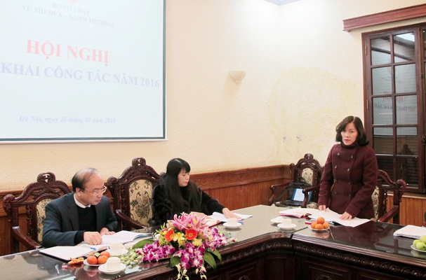 Ghi nhận và biểu dương những thành tích mà Vụ Thi đua – Khen thưởng đã đạt được trong năm 2015, Thứ trưởng Phan Chí Hiếu khẳng định: công tác thi đua, khen thưởng của Bộ, ngành đã ngày càng đi vào thực chất và có tác động tốt, được các đơn vị, cá nhân, các cơ quan thi hành án và tư pháp địa phương coi trọng. Trong năm 2016, Thứ trưởng đề nghị Vụ sớm hoàn thành và triển khai Đề án nâng cao chất lượng công tác thi đua, khen thưởng ngành Tư pháp giai đoạn 2016 – 2020; tiếp tục hoàn thiện thể chế; tập trung kiện toàn tổ chức bộ máy; tăng cường công tác sơ kết, tổng kết và kiểm tra, hướng dẫn công tác thi đua, khen thưởng; tích cực đẩy mạnh ứng dụng công nghệ thông tin trong hoạt động của đơn vị.