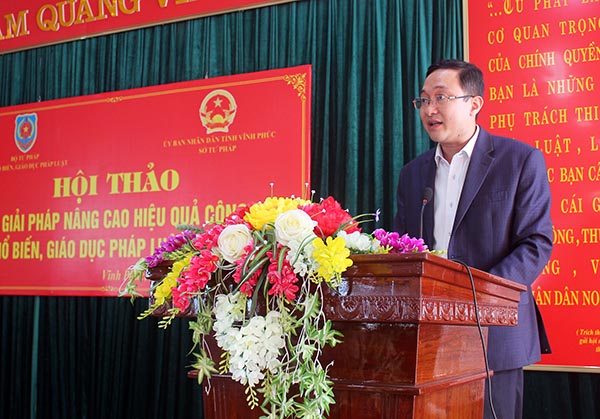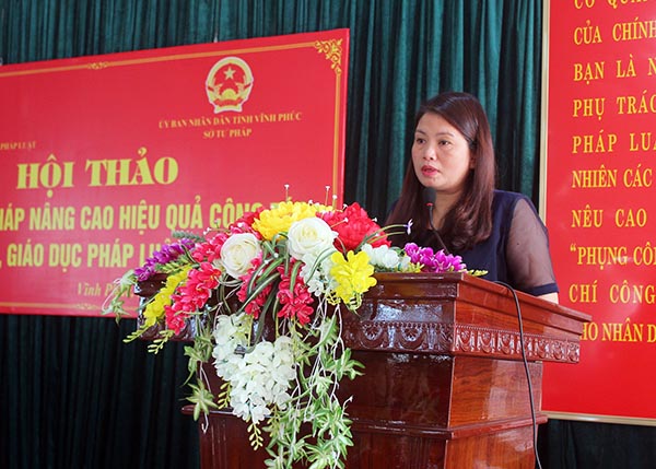 Sau khi nêu lên một số mô hình hay, kết quả nổi bật trong công tác PBGDPL, đại diện Sở Tư pháp Vĩnh Phúc cũng để cập tới một số khó khăn trong công tác PBGDPL trên địa bàn tỉnh như một số cơ quan, đơn vị chưa tích cực trong phối hợp chỉ đạo. Năng lực đội ngũ tuyên truyền viên, báo cáo viên pháp luật còn hạn chế, tủ sách pháp luật ở cơ sở hiệu quả chưa cao, còn nhiều khó khăn, lúng túng trong ứng dụng công nghệ thông tin…