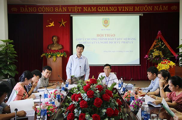 Thực hiện Quyết định số 2245/QĐ-BTP ngày 24/8/2018 của Bộ Tư pháp về việc ban hành Kế hoạch xây dựng chương trình khung đào tạo, chương trình môn học cao đẳng nghề Luật và nghề Dịch vụ pháp lý, ngày 14/11/2018, tại Trường Trung cấp Luật Đồng Hới, Vụ Tổ chức cán bộ - Bộ Tư pháp phối hợp với Trường Trung cấp Luật Đồng Hới tổ chức Hội thảo góp ý Chương trình đào tạo cao đẳng nghề Luật và nghề Dịch vụ pháp lý.