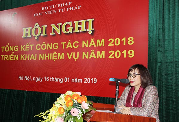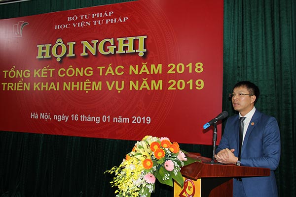 Báo cáo kết quả công tác năm 2018, Bí thư Đảng ủy, Phó giám đốc Học viện Tư pháp Nguyễn Xuân Thu khẳng định, trong năm 2018, Học viện đã tích cực, chủ động phối hợp với các đơn vị thuộc Bộ và các đơn vị trong Học viện để triển khai toàn diện các lĩnh vực công tác, hoàn thành các nhiệm vụ trọng tâm đúng tiến độ đề ra và bảo đảm chất lượng. Đặc biệt Học viện đã hoàn thành vượt chỉ tiêu kết quả đào tạo, bồi dưỡng năm 2018, được cấp có thẩm quyền cho phép thực hiện nhiệm vụ đào tạo trung cấp lý luận chính trị - hành chính; hoàn thành việc chuyển đổi các chương trình đào tạo theo hệ thống tín chỉ và hoàn thành việc biên soạn giáo trình, tài liệu phục vụ cho hoạt động giảng dạy, học tập và nghiên cứu khoa học. Hoạt động hợp tác, hỗ trợ Học viện Tư pháp quốc gia Lào được tập trung triển khai theo Kế hoạch được phê duyệt. Một số đề án, thể chế nội bộ quan trọng của Học viện được hoàn thành; các chế độ, chính sách về tiền lương, bảo hiểm y tế, bảo hiểm xã hội cho công chức, viên chức, người lao động được đảm bảo đầy đủ, kịp thời; công tác ứng dụng công nghệ thông tin, thư viện được chú trọng tăng cường; đời sống, thu nhập của công chức, viên chức, người lao động được duy trì ổn định và nâng dần từng bước.