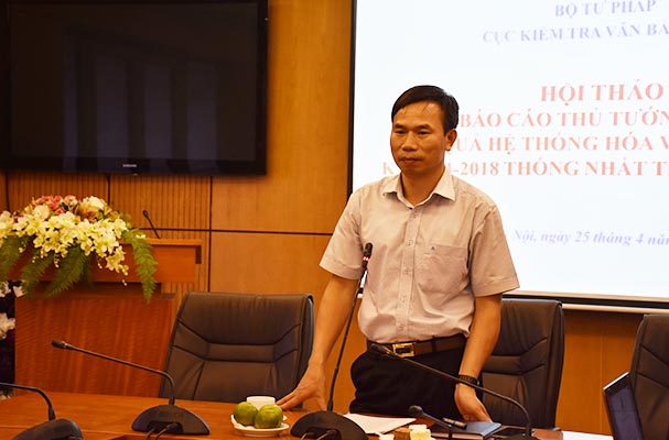 Chiều 25/4, Bộ Tư pháp tổ chức Hội thảo góp ý dự thảo Báo cáo trình Thủ tướng Chính phủ về kết quả hệ thống hóa văn bản quy phạm pháp luật (VBQPPL) kỳ 2014 - 2018 (kỳ 2) thống nhất trong cả nước.