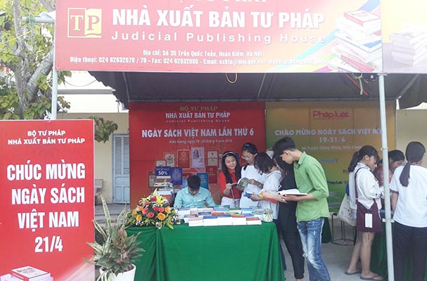 Nhằm khẳng định vai trò, tầm quan trọng của sách trong việc tuyên truyền, phổ biến, nâng cao ý thức thượng tôn pháp luật trong quần chúng nhân dân, cũng như tôn vinh giá trị của sách, xây dựng văn hóa đọc sách trong đội ngũ cán bộ, công chức, viên chức và đông đảo bản đọc và mở rộng hoạt động quảng bá hình ảnh, thương hiệu của Nhà xuất bản Tư pháp trong phạm vi cả nước, từ ngày 10/4/2019 - 22/4/2019, Nhà xuất bản Tư pháp đã tích cực hưởng ứng “Ngày sách Việt Nam lần thứ VI” và “Ngày hội đọc sách và bản quyền Thế giới 23/4” thông qua hoạt động trưng bày, giới thiệu và phát hành xuất bản phẩm của đơn vị tại trụ sở Bộ Tư pháp, Trường Đại học Luật Hà Nội và Công viên Thống Nhất, ủy quyền cho Trung tâm Hỗ trợ xuất bản và phát hành sách pháp luật của Nhà xuất bản Tư pháp tại thành phố Hồ Chí Minh tham gia trưng bày, giới thiệu sách tại tỉnh Kiên Giang.
