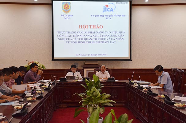 Ngày 27/6, phối hợp với JICA, Bộ Tư pháp tổ chức Hội thảo thực trạng và giải pháp nâng cao hiệu quả công tác tiếp nhận và xử lý phản ánh, kiến nghị (PAKN) của các cơ quan, tổ chức và cá nhân về tình hình thi hành pháp luật (THPL). Đây là hoạt động góp phần nghiên cứu, xây dựng dự thảo Quyết định của Thủ tướng Chính phủ ban hành quy trình tiếp nhận, xử lý PAKN về tình hình THPL.