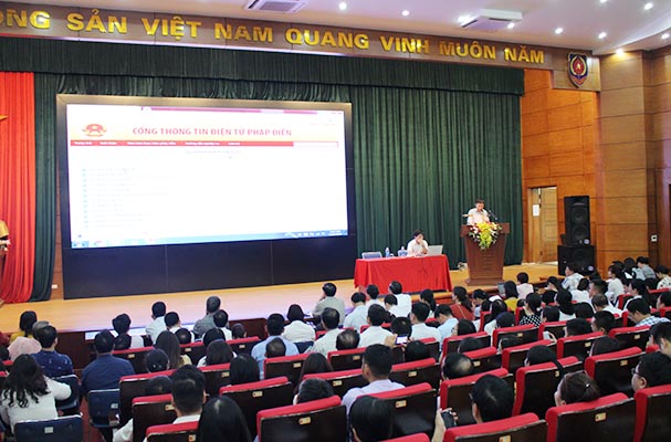 Tại Hội nghị, đồng chí Nguyễn Duy Thắng, Trưởng phòng Phòng Pháp điển và hợp nhất văn bản QPPL giới thiệu về Bộ pháp điển và hướng dẫn khai thác, sử dụng Bộ pháp điển. Theo đó, pháp điển là việc cơ quan nhà nước rà soát, tập hợp, sắp xếp các QPPL đang còn hiệu lực trong các văn bản QPPL do cơ quan nhà nước ở trung ương ban hành để xây dựng Bộ pháp điển. Bộ pháp điển gồm 45 chủ đề, mỗi chủ đề có một hoặc nhiều đề mục (có với 265 đề mục thuộc 45 chủ đề). Trong thời gian qua, Bộ Tư pháp đã phối hợp chặt chẽ với các bộ, ngành triển khai công tác pháp điển bảo đảm hiệu quả, chất lượng và đúng tiến độ đặc biệt hoàn thành pháp điển trước tiến độ đối với một số đề mục có hệ thống QPPL ổn định và có nội dung liên quan đến quyền, lợi ích của người dân, doanh nghiệp. Giới thiệu về Bộ pháp điển và cách thức khai thác, sử dụng Bộ pháp điển, đồng chí Nguyễn Duy Thắng đã tập trung trình bày các nội dung như: các hình thức pháp điển hệ thống QPPL trên thế giới; cách thức pháp điển hệ thống QPPL ở Việt Nam; nguyên tắc thực hiện pháp điển; cấu trúc của Bộ pháp điển; giá trị sử dụng Bộ pháp điển; công tác xây dựng Bộ pháp điển… Qua đó, đồng chí Thắng cũng đánh giá và chỉ ra một số ý nghĩa cơ bản của Bộ pháp điển như: giúp cá nhân, tổ chức tiện lợi trong việc tìm kiếm, tra cứu, thỏa mãn nhu cầu sử dụng và tìm hiểu các quy định của pháp luật; bảo đảm tính công khai, minh bạch của hệ thống pháp luật và góp phần nâng cao sự tin tưởng của người dân vào hệ thống pháp luật; góp phần nâng cao tính thống nhất, tính đồng bộ của hệ thống QPPL; tạo thuận lợi trong quá trình xây dựng, hoàn thiện hệ thống pháp luật. Bên cạnh các ý nghĩa nêu trên thì Bộ pháp điển cũng có những hạn chế nhất định như không thực hiện pháp điển các QPPL đã hết hiệu lực, án lệ và tập quán.