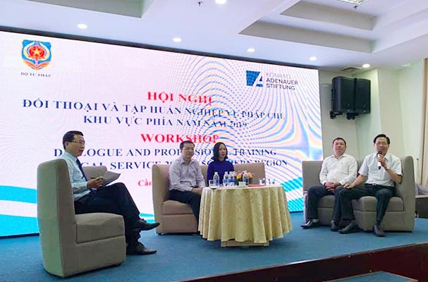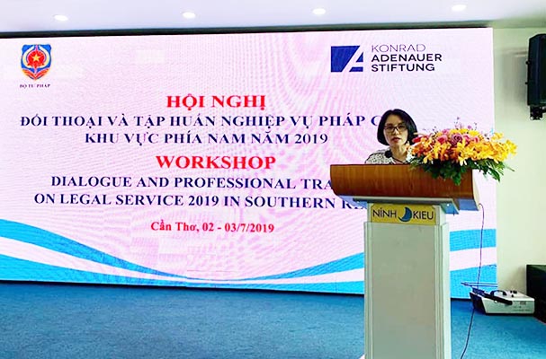 Trong 02 ngày 02-03/7/2019, tại Thành phố Cần Thơ, Bộ Tư pháp phối hợp với Viện Konrad - Adenauer - Stiftung (Viện KAS), Cộng hòa liên bang Đức tại Việt Nam tổ chức Hội nghị đối thoại và tập huấn nghiệp vụ pháp chế khu vực phía Nam năm 2019. Ông Nguyễn Hồng Tuyến, Vụ trưởng Vụ Các vấn đề chung về xây dựng pháp luật (Bộ Tư pháp) và bà Nguyễn Minh Tuyến, Chánh Văn phòng Viện KAS, Cộng hòa Liên bang Đức tại Việt Nam đồng chủ trì Hội nghị.