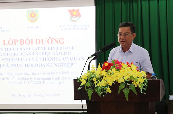 Phát biểu tại Lớp bồi dưỡng, TS. Hồ Quang Huy, Ủy viên Ban Chấp hành Đoàn Khối, Bí thư Đoàn Bộ, Giám đốc Nhà xuất bản Tư pháp nhấn mạnh trong thời gian qua, hệ thống chính sách, pháp luật điều chỉnh hoạt động của doanh nghiệp ngày càng được hoàn thiện với nhiều quy định mới, tạo không gian pháp lý thông thoáng, khuyến khích doanh nghiệp vừa và nhỏ phát triển nhanh, bền vững. Lớp bồi dưỡng được tổ chức ngày hôm nay là cơ hội để các đại biểu tham dự được tiếp cận với các quy định phát luật, các kỹ năng cần thiết liên quan trực tiếp đến quy trình, thủ tục đăng ký thành lập mới của doanh nghiệp, quản trị doanh nghiệp và phục hồi doanh nghiệp. Sự tham dự đông đảo của các nhà quản lý, doanh nghiệp, hộ kinh doanh trên địa bàn tỉnh Hậu Giảng đã thể hiện quyết tâm, mong muốn được tìm hiểu, chia sẻ kinh nghiệm, giải pháp thúc đẩy hoạt động sản xuất, kinh doanh, nâng cao hiệu quả kinh tế, đồng thời hạn chế những rủi ro pháp lý trong hoạt động kinh doanh.