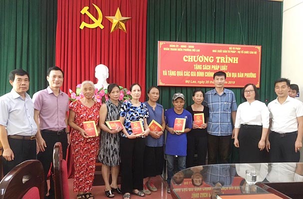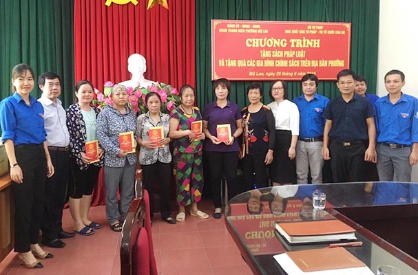 Chương trình trao tặng sách pháp luật cho Đảng ủy, Hội đồng nhân dân, Ủy ban nhân dân phường Mộ Lao và tặng quà các gia đình chính sách, gia đình có hoàn cảnh khó khăn trên mảnh đất quê hương của Cố luật sư - Bộ trưởng Bộ Tư pháp Vũ Trọng Khánh nhận được sự quan tâm chỉ đạo, tạo điều kiện của Chi ủy, Lãnh đạo Nhà xuất bản Tư pháp và Vụ Tổ chức cán bộ. Đây là hoạt động vừa mang ý nghĩa giáo dục chính trị - tư tưởng sâu sắc, vừa góp phần hỗ trợ Đảng ủy, HĐND, UBND phường bổ sung, cập nhật các tài liệu cần thiết, quan trọng cho Tủ sách pháp luật của phường, cung cấp nguồn tư liệu cho cán bộ, công chức và người dân trên địa bàn phường nghiên cứu, tìm hiểu và áp dụng pháp luật, cũng như chung tay, góp sức chia sẻ bớt phần nào khó khăn với các gia đình chính sách, gia đình có hoàn cảnh khó khăn.>