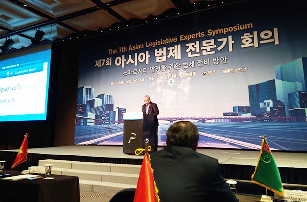 Tại Hội nghị, bà Nguyễn Chi Lan, Phó Vụ trưởng Vụ Pháp luật dân sự - kinh tế, đại diện cho Bộ Tư pháp Việt Nam, đã phát biểu tham luận về chủ đề “Phát triển thành phố thông minh ở Việt Nam”, trong đó nhấn mạnh ba nội dung chính về tình hình phát triển thành phố thông minh ở Hà Nội; Chiến lược phát triển công nghệ thông tin truyền thông (ICT) và hệ thống pháp luật, chính sách trong lĩnh vực này. Bên cạnh hệ thống các văn bản quy phạm pháp luật chuyên ngành như Luật Đất đai, Luật đầu tư công, Luật Quy hoạch đô thị…, Thủ tướng Chính phủ cũng đã ban hành các Quyết định về Chương trình hành động quốc gia nhằm tăng trưởng xanh và phát triển đô thị bền vững, mới nhất là Quyết định số 950/QĐ-TTg của Thủ tướng Chính phủ ngày 1/8/2018 phê duyệt Đề án phát triển đô thị thông minh bền vững Việt Nam giai đoạn 2018-2025 và định hướng đến năm 2030. Đề án đã lựa chọn 04 thành phố là Hà Nội, Đà Nẵng, Cần Thơ và thành phố Hồ Chí Minh để triển khai thi điểm phát triển mô hình thành phố thông minh và bền vững. Trong thời gian tới, để tiếp tục phát triển mô hình này, Việt Nam cần tích cực tiến hành rà soát, hoàn thiện hệ thống chính sách và các văn bản pháp luật về phát triển đô thi bền vững, xây dựng tiêu chuẩn quốc gia về phát triển thành phố thông minh, hình thành, kết nối liên thông và duy trì hoạt động của hệ thống dữ liệu không gian đô thị số hóa và cơ sở dữ liệu quốc gia, đẩy mạnh ứng dụng công nghệ thông tin và phát triển hạ tầng đô thị.