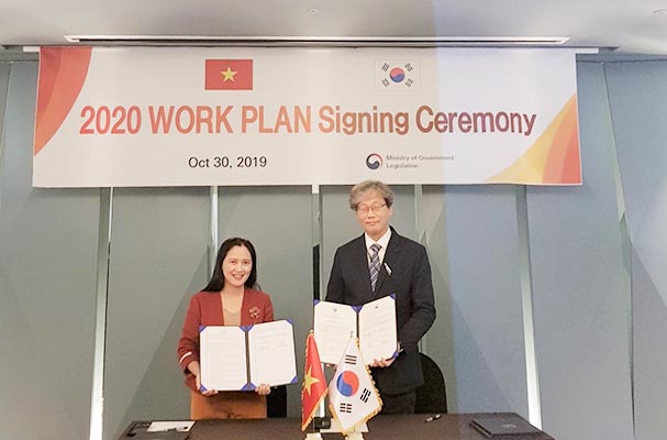 Năm 2012, Bản ghi nhớ hợp tác giữa Bộ Tư pháp Việt Nam và Bộ Lập pháp Chính phủ Hàn Quốc đã được ký kết, đánh dấu bước phát triển trong quan hệ hợp tác về pháp luật và tư pháp giữa hai Bộ. Để triển khai Bản ghi nhớ hợp tác, hai bên đã tiến hành trao đổi nhiều đoàn cấp Bộ, cấp Vụ sang tham khảo, học hỏi kinh nghiệm lẫn nhau. Việc ký kết Chương trình hợp tác năm 2020 cũng nhằm tiếp tục thực hiện Bản ghi nhớ hợp tác, đồng thời triển khai kết quả chuyến thăm và làm việc tại Hàn Quốc của Bộ trưởng Bộ Tư pháp Lê Thành Long vào tháng 4/2019.