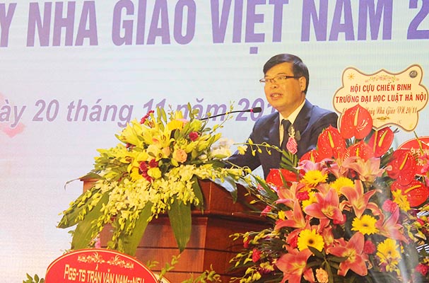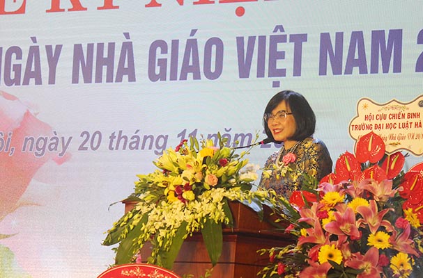 Thay mặt lãnh đạo Nhà trường, TS.Trần Quang Huy, Phó Hiệu trưởng phụ trách Trường ĐH Luật Hà Nội đã gửi tới các thầy cô giáo, cán bộ, công chức, viên chức đang công tác tại trường lời chúc sức khỏe và tri ân sâu sắc. Với truyền thống đáng tự hào trên chặng đường 40 năm mà bao thế hệ các thầy cô đã dày công vun đắp, cống hiến, Trường đã đào tạo hơn 100.000 học viên, sinh viên trong đó có nhiều người thành đạt, giữ những vị trí công tác quan trọng và được xã hội ghi nhận. Vì vậy, Lãnh đạo Trường ĐH Luật Hà Nội tự hào và tin tưởng rằng với sự quan tâm, chỉ đạo, tạo điều kiện của Đảng, Nhà nước, đặc biệt là Bộ Tư pháp, Đảng ủy khối các trường ĐH, CĐ cùng nỗ lực phấn đấu đổi mới, sáng tạo, tâm huyết của mỗi cán bộ, giảng viên thì tập thể nhà trường sẽ tiếp tục gặt hái thêm nhiều thành tích mới.