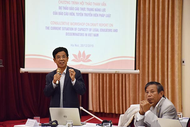 Đây là nội dung được ông Lê Vệ Quốc, Vụ trưởng Vụ Phổ biến, giáo dục pháp luật (PBGDPL), Bộ Tư pháp nêu ra tại Hội thảo tham vấn Dự thảo báo cáo thực trạng năng lực của báo cáo viên, tuyên truyền viên pháp luật diễn ra sang 20/12. Tham dự Hội nghị có nguyên Thứ trưởng Bộ Tư pháp Phạm Quý Tỵ, ông Nicholas Boot, Cố vấn chương trình Tiếp cận Công lý và quyền con người, Chương trình Phát triển Liên Hợp quốc (UNDP), Văn phòng Khu vực Châu Á - Thái Bình Dương cùng đại diện các cơ quan, tổ chức có liên quan