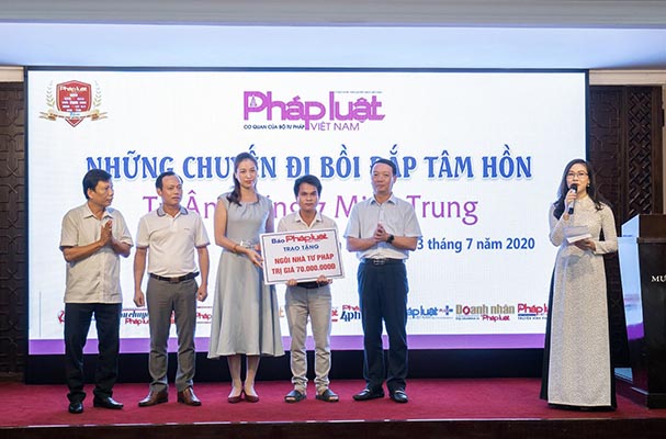 Trên hành trình tri ân tháng 7 miền Trung, Đoàn công tác của Báo PLVN đã tiếp tục sứ mệnh truyền tải pháp luật, sẻ chia với những cán bộ Tư pháp còn khó khăn tại TP.Huế. Tại đây, Báo PLVN đã trao tặng 2 “Mái ấm tư pháp”, mỗi mái ấm trị giá 70 triệu đồng cho anh Hà Văn Bình, cán bộ tư pháp xã Quảng Lợi, huyện Quảng Điền, tỉnh Thừa Thiên – Huế và anh Hồ Văn Hang, cán bộ tư pháp xã Ba Nang, huyện Đăkrông, tỉnh Quảng Trị. Món quà tuy không lớn nhưng là niềm khích lệ, động viên lớn lao với cá nhân 2 anh nói riêng cũng như cán bộ khó khăn trong ngành Tư pháp nói chung.
