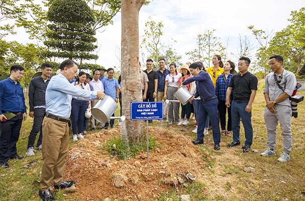 Lãnh đạo Báo PLVN trồng cây lưu niệm tại Khu di tích Ngã ba Đồng Lộc