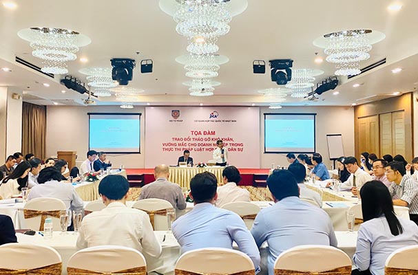 Tại Tọa đàm trao đổi tháo gỡ khó khăn, vướng mắc cho doanh nghiệp trong thực thi pháp luật hợp đồng dân sự, các chuyên gia trong lĩnh vực pháp luật về hợp đồng đã giới thiệu và đưa ra những vấn đề cần lưu ý khi giao kết, thực hiện hợp đồng và các giải quyết tranh chấp hợp đồng, về thực tiễn xét xử của Tòa án đối với các tranh chấp liên quan đến hợp đồng, đồng thời đưa ra một số tình huống thực tế, cụ thể để trao đổi, thảo luận trực tiếp tại Tọa đàm. Các đại biểu tham dự tích cực tham gia thảo luận, đồng thời nêu lên một số vướng mắc, bất cập trong quá trình thực thi pháp luật hợp đồng trên thực tế và đưa ra một số kiến nghị.