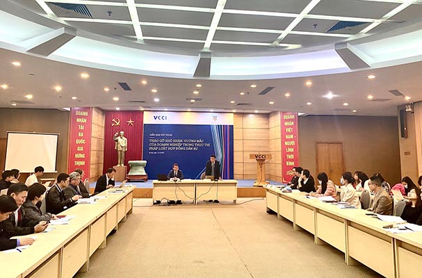 Thực hiện nhiệm vụ được Thủ tướng Chính phủ giao về việc rà soát cụ thể, đánh giá các quy định của Bộ luật Dân sự năm 2015 về hợp đồng theo Quyết định số 1268/QĐ-TTg ngày 02/10/2019 phê duyệt Đề án hoàn thiện pháp luật về hợp đồng và giải quyết tranh chấp bằng phương thức trọng tài thương mại, hòa giải thương mại (Quyết định 1268/QĐ0TTg), ngày 11/12/2020, Bộ Tư pháp phối hợp với Phòng Thương mại và Công nghiệp Việt Nam (VCCI) tổ chức Diễn đàn đối thoại với chủ đề “Tháo gỡ khó khăn, vướng mắc cho doanh nghiệp trong thực thi pháp luật về hợp đồng dân sự” tại Hà Nội.