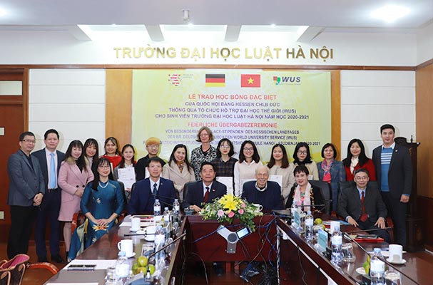Chiều 16/12, tại Trường ĐH Luật Hà Nội đã diễn ra lễ trao học bổng đặc biệt của Quốc hội bang Hessen, CHLB Đức cho 8 sinh viên có thành tích xuất sắc của nhà trường. Mỗi suất học bổng trị giá 27 triệu đồng.