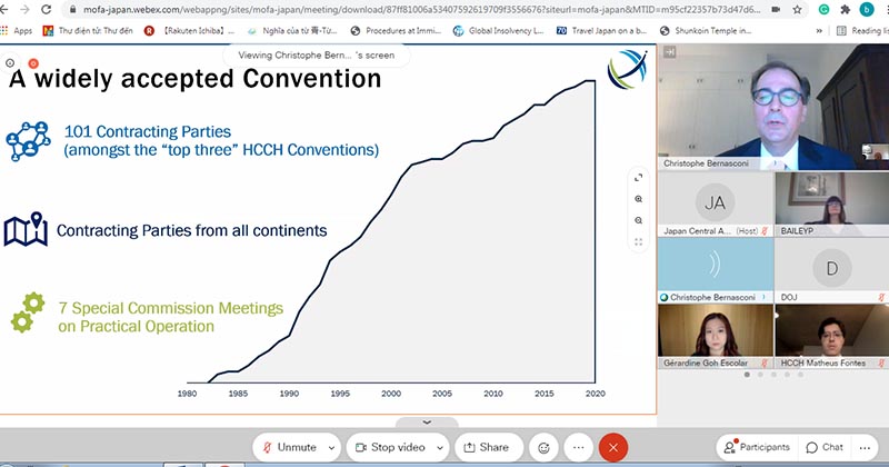Ngày 18/3/2021, Bộ Ngoại giao Nhật Bản phối hợp với Ban thư ký Hội nghị La Hay về tư pháp quốc tế đã tổ chức Tọa đàm trực tuyến về Công ước La Hay về khía cạnh dân sự của hành vi bắt cóc trẻ em tại khu vực châu Á Thái Bình Dương với sự tham gia của đại diện của Ban thư ký, các quốc gia đã là thành viên (Nhật Bản, Singapore, Thái Lan, Philippines, Đặc khu hành chính Hồng Kông, Úc, Hoa Kỳ, Hàn Quốc…) và chưa phải thành viên Công ước trong khu vực (Indonesia, Việt Nam).