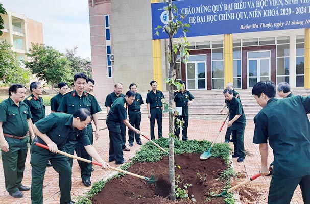 Trước đó, Hội cựu Chiến binh Trường Đại học Luật Hà Nội đã trồng tặng cho Phân hiệu 02 cây sao đen trước Hội trường lớn.
