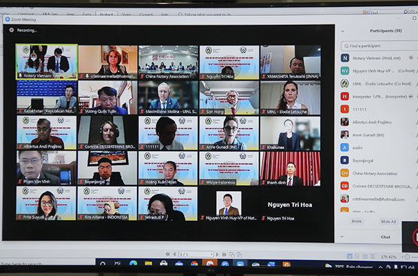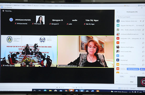 Đại diện các quốc gia tham dự Hội nghị đã thảo luận, thống nhất một số nội dung quan trọng của phiên họp toàn thể năm 2022; đồng thời, các đại biểu cũng tích cực trao đổi kinh nghiệm về tình hình số hóa công chứng, mức độ thực hiện công chứng từ xa ở mỗi nước thành viên, dự kiến tương lai...