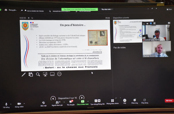 “Chia sẻ kinh nghiệm của Pháp về bảo vệ dữ liệu cá nhân trên môi trường mạng” được tổ chức nhằm trao đổi, thảo luận về thực tiễn xây dựng pháp luật về bảo vệ dữ liệu cá nhân trên môi trường mạng của Cộng hòa Pháp, từ đó cung cấp thông tin và kinh nghiệm cho Việt Nam trong quá trình nghiên cứu, hoàn thiện pháp luật về bảo vệ dữ liệu cá nhân trên môi trường mạng đặc biệt trong bối cảnh phát triển mạnh mẽ của không gian mạng cùng với Cách mạng công nghiệp lần thứ tư hiện nay.