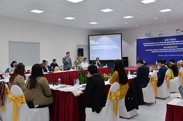 Hội thảo được tổ chức trực tiếp tại đầu cầu V-Resort, Hoà Bình với sự tham dự của đại diện một số Bộ, ngành, Hiệp hội, tổ chức chính trị - xã hội, các trường đại học, viện nghiên cứu, doanh nghiệp, như: Bộ Công Thương, Bộ Thông tin và Truyền thông, Bộ Văn hoá, Thể thao và Du lịch, Bộ Công an, Bộ Khoa học và Công nghệ, Bộ Tài chính, Ngân hàng Nhà nước Việt Nam, Trường Đại học Luật Hà Nội, Công ty Ví MOMO, Viện Nghiên cứu Chính sách và Phát triển truyền thông, Công ty Luật Baker & McKenzie,... Đồng thời, Hội thảo có sự tham dự đông đảo thông qua hình thức trực tuyến của các đại biểu đến từ các cơ quan nhà nước, hiệp hội, doanh nghiệp, tổ chức, các trường đại học, viện nghiên cứu… và các diễn giả là các chuyên gia của CHLB Đức.