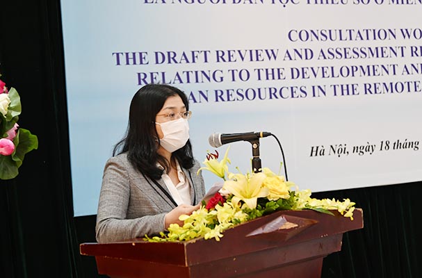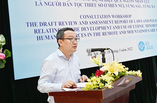 Phát biểu tại Hội thảo, đồng chí Hồ Quang Huy, Cục trưởng Cục Kiểm tra văn bản quy phạm pháp luật khẳng định, vấn đề dân tộc, chính sách dân tộc được Đảng và Nhà nước đặc biệt quan tâm nhằm phát huy mọi nguồn lực để phát triển kinh tế - xã hội ở những vùng này. Việc hoàn thiện chính sách pháp luật về phát triển nguồn nhân lực là người DTTS ở miền núi, vùng sâu, vùng xa cũng luôn được xác định là nhiệm vụ trọng tâm và đã đạt được nhiều kết quả quan trọng. Tuy nhiên, bên cạnh những kết quả đạt được, vẫn còn tồn tại hạn chế, bất cập, chưa đáp ứng được yêu cầu, nhiệm vụ đặt ra, nhất là trong giai đoạn hiện nay. Người thiểu số làm việc trong lĩnh vực pháp luật và tư pháp có tỷ lệ còn khiêm tốn, chính sách thu hút, đãi ngộ còn chưa thỏa đáng, còn hạn chế bất cập.