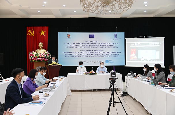 Sáng nay – 18/03, Bộ Tư pháp Việt Nam phối hợp với Liên minh Châu Âu (European Union) và Chương trình phát triển Liên Hợp quốc (UNDP) tổ chức Hội thảo góp ý Báo cáo rà soát, đánh giá pháp luật, chính sách và khuyến nghị hoàn thiện pháp luật liên quan đến nâng cao chất lượng và sử dụng hiệu quả nguồn nhân lực là người dân tộc thiểu số ở miền núi, vùng sâu, vùng xa, trọng tâm là lĩnh vực pháp luật và tư pháp.